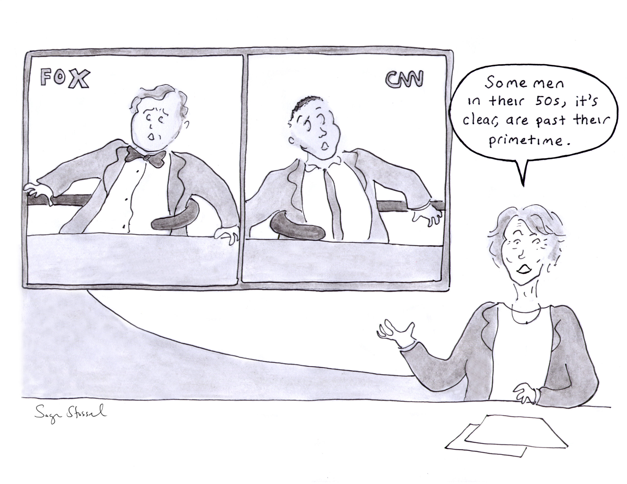 tucker carlson, fox, don lemon, cnn, women past their prime, news anchors, cartoon, sage stossel